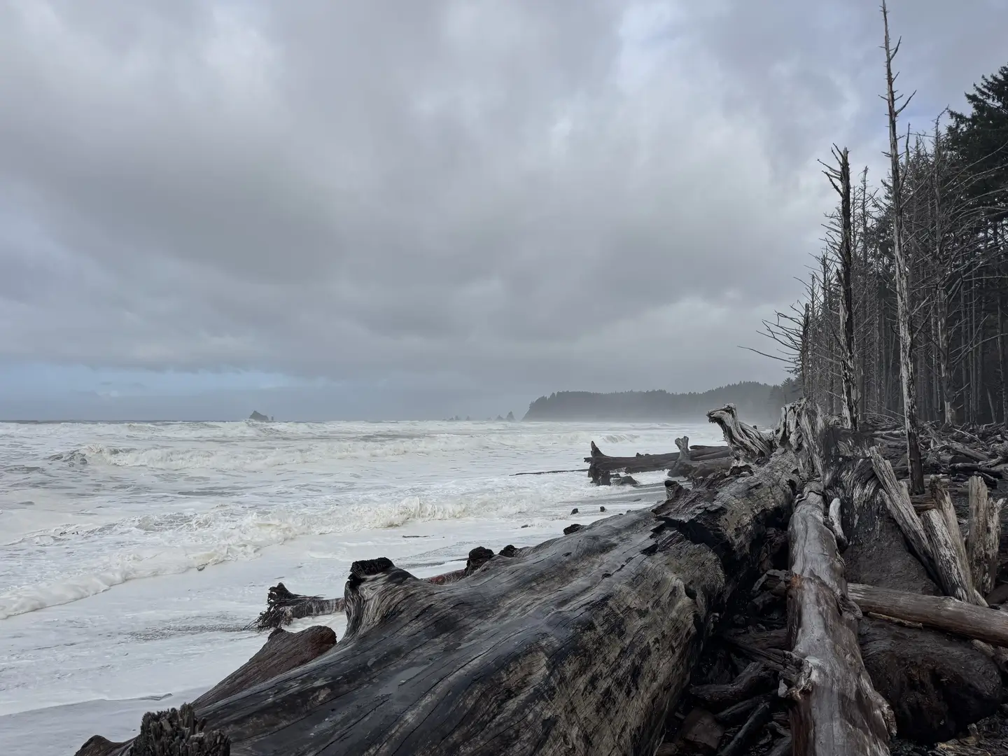 A very dramatic morning at Rialto Beach in Olympic National Park. The wind was up, blowing sea foam onto the beach and the clouds across the sky. I was there somewhere close to high tide, so not much of the beach was available.